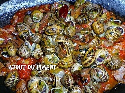 Ajouter les escargots Laisser mijoter une petite heure pour préparation - maison des escargots On peut ajouter au dernier moment 1 petit bol de noix pilées. Dans une grande gamellefaire revenirles oignons et lail hachésa lhuile dolive. De piment fort facultatif 1 verre de vin blanc sec 100g de talon de jambon serrano 4 ou 5 champignons de Paris sel.